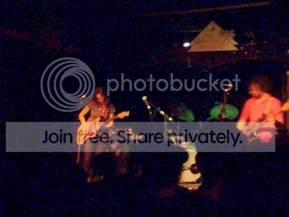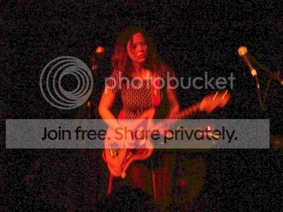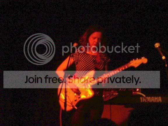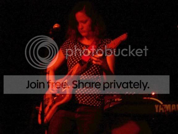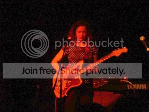 Stayed in bed until almost 11am. ahhhhhh Relaxing Thursday. I could get used to this. Of course it’s going to be odd doing the work=>off=>work=>weekend thing. Oh well. Last night was a good/bad type of night. Not really bad, just annoying. I went to the Middle East to see the Mary Timony Band. They were headlining a three band bill so I was assuming they’d go on around 11:30. I got there are 11:20 only to find out they went on at 11:15. Damn it! Even worse, I tried to parallel park on a side street, and I failed miserably. My parallel parking skills are celebrated world wide, but last night I felt like a tourist visiting the big city for the first time. I just sucked. The set was good. Everything I heard was from one of the two most recent records, which is good because those are the only two Mary Timony records I’ve heard. The last one came out on my birthday, May 8, so it was probably a bit too soon to hear new material. The mix was a tad on the muddy side, but not overly so. My sneaking suspicion that the song “BackwardsForwards” would smoke onstage was proven right. I never saw Helium live, and last night sort of made me regret that more than usual. Mary can sure play the guitar. Tonight I’m going to a New Hampshire Fisher Cats game. My girlfriend’s company is having an outing and she asked me to come along. This is the first time I’ll meet any of her friends/associates/colleagues and I’m trying not to be nervous. The scary thing is, I might have to route against the Fisher Cats because they are from Manchester and my hockey hatred for Manchester may bubble up to the surface. We shall see. Okay, now for the obligatory Mary Timony Band pictures. I never really noticed just how dark it is at the Middle East Upstairs. I’m surprised anything came out. The spot I was standing in made it tough for me to get pictures of the whole band, but I had a nice clear shot of Ms Timony for most of the time. I altered the photos on my PC with it’s crappy monitor, and the end results didn’t look like crap at the time. Of course I’ve now checked them out on a good monitor and sure enough… crap. Anyway, here are a few….