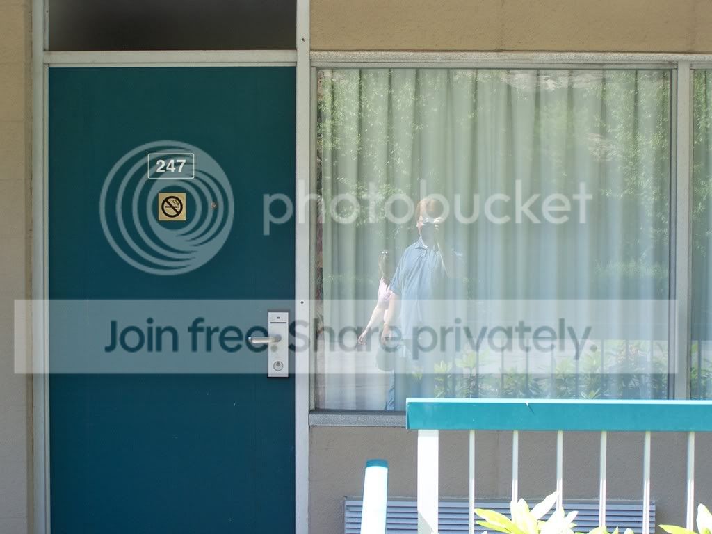 This is a made-for-myspace photo taken today as we were leaving. It’s our room, and in great myspace photography tradition you can see me taking the picture in the window. Dig it.