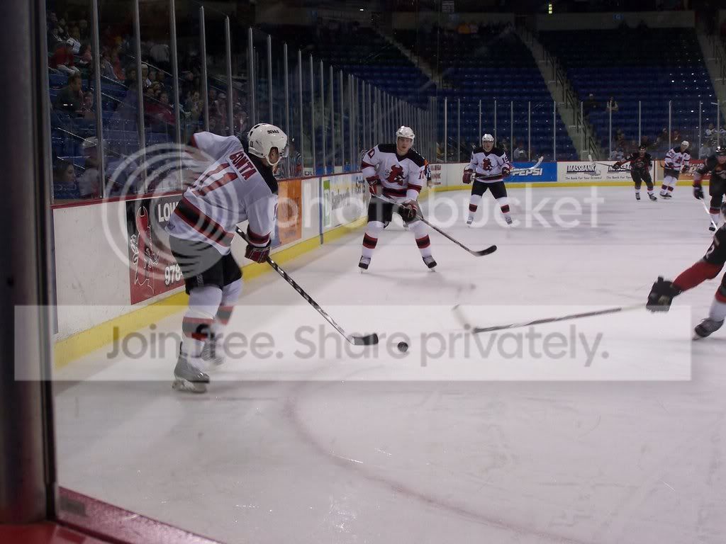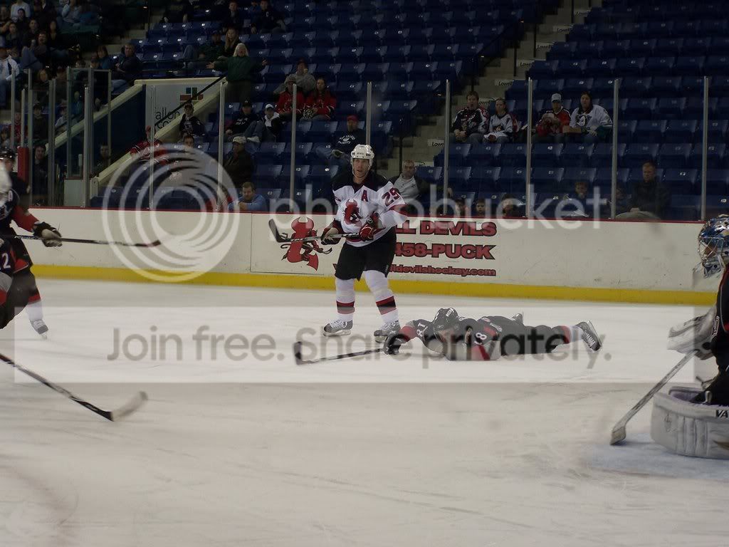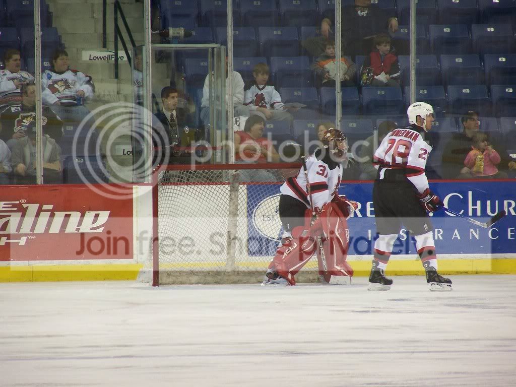 We celebrated Thanksgiving twice this year. On Turkey Day itself I was at Jen’s, my brother was at his wife’s parents, and my sister was at her husband’s parents. My parents visited my uncle in the hospital. Then on Sunday we all met at my parents’ house and had Thanksgiving Part Deux… we did it all again. I have never eaten so much turkey in my life. Gobble-Freakin’-Gobble. Of course, both celebrations were excellent. Probably the best part was when Harry’s grandmother asked him what he was thankful for this year and he responded with an emphatic, “pie.” On Saturday Jenn, the kids, my brother, his wife, and I all went to the North Pole. I shit you not. We went for a ride on the Polar Express. It picked us up in Haverhill, MA and took us up to visit Santa and the elves. The whole ride, round trip, took less than two hours, and the North Pole looked remarkably similar to Woburn, MA, but Santa was there and I totally believe we were on the top of the world. If you don’t believe me, watch this little slide show. Proof: https://picasaweb.google.com/s/c/bin/slideshow.swf Apart from globe trotting and turkey eating, Jen and I watched a lot of Star Wars, and a lot of Lowell Devils hockey. I decided to take advantage of the miniscule crowds by moving up close to take some pictures. On Wednesday 11/21 I snuck into section 0, row 4 and took a few. On Sunday 11/25 Jen and I snuck into section T row 1. Here are a few pictures for your hockey geek enjoyment: