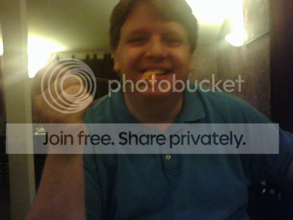 I know no one who’s known me for any length of time will be able to believe that I ate food that wasn’t bland and consisted of more than a chunk of meat and a potato, so we brought some evidence. Chicken Tika… did I spell that right? Here’s me, about to take a bite of Indian food. And just a little further proof for the skeptics in the audience… here’s some video. And last but not least… a quick change of subject… What the hell is she so happy about? |