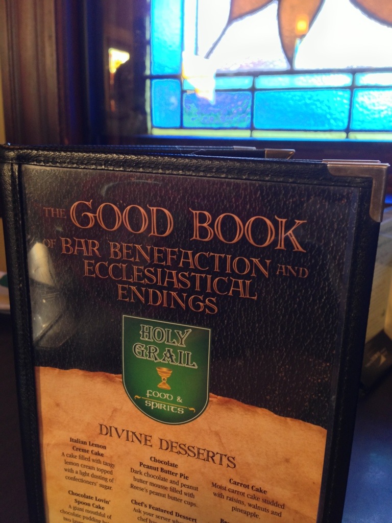 The Most Blasphemous Restaurant Ever… And I Love It! robertjames1971 Generic, Uncategorized June 9, 2013 1 Minute We are in Epping, NH at a restaurant called The Holy Grail. It’s an Irish Pub built inside a building that used to be a church. This has to be the most blasphemous experience of my life. I want to eat here, three meals a day, forever. Share this: Click to share on Bluesky (Opens in new window) Bluesky Click to share on Reddit (Opens in new window) Reddit Share on Tumblr Click to share on Mastodon (Opens in new window) Mastodon Like Loading... Published by robertjames1971 I'm wicked tall. View all posts by robertjames1971 Published June 9, 2013