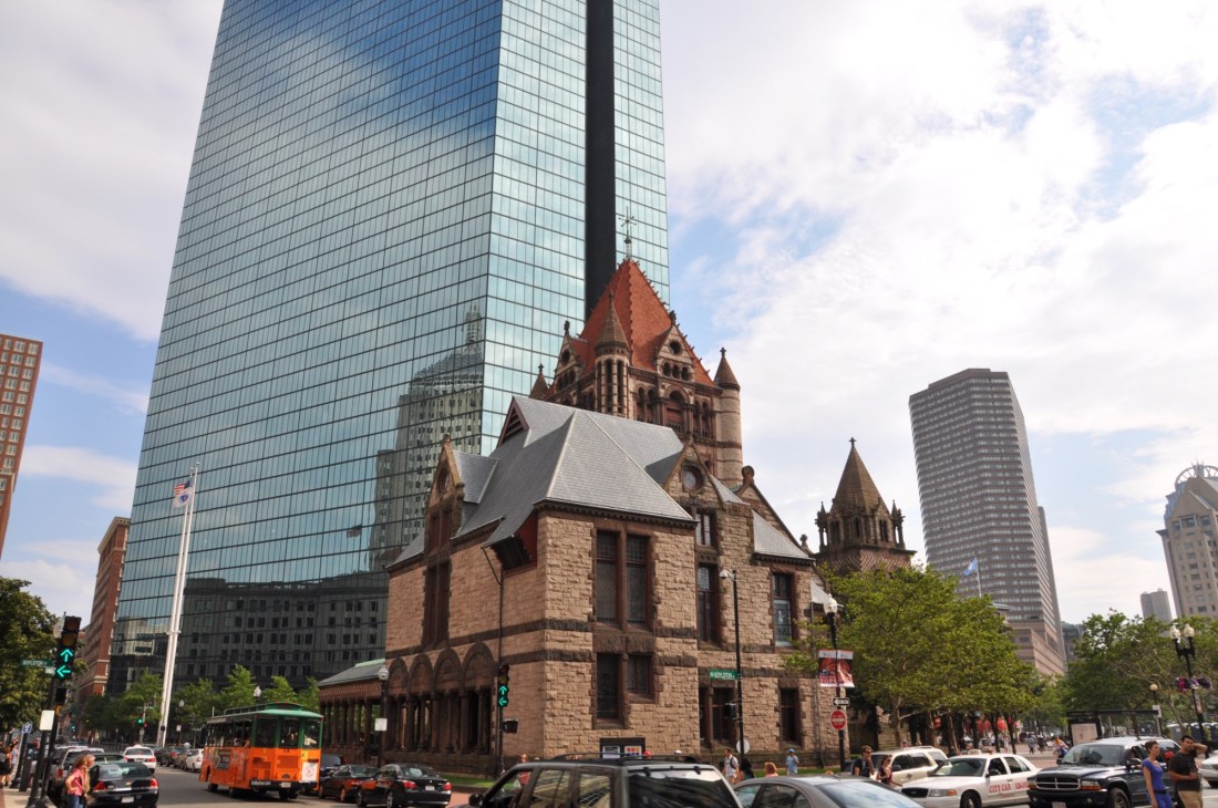 Just over four years later my wife, step kids, and I went into town for a duck tour. Despite living my whole life only 20–30 miles out of town I had never done a duck tour before. After it was over we wandered around the city and ended up on Clarendon Street in front of the Hancock. I tried to reproduce that first picture using a Nikon D90. It just wasn’t the same.