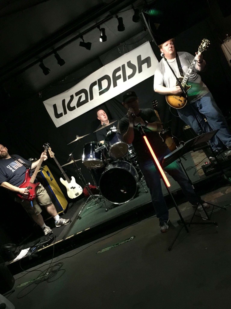 Our drummer shared a bunch of pics from the 7/1 show last night. I don’t know who took them, but this might be my fav, mostly for the batman-esque angle. If only Mike’s head weren’t cut off. Also, notice that we are all blankly looking over toward stage right… That’s where the big fan was. That fan was the best thing in the universe.