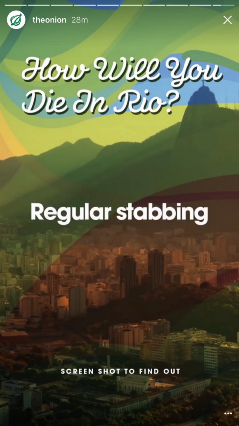Is Instagram’s stories function a shameless rip off of Snapchat? Well sure, but it doesn’t matter because The Onion has already created the greatest story humanly possible.