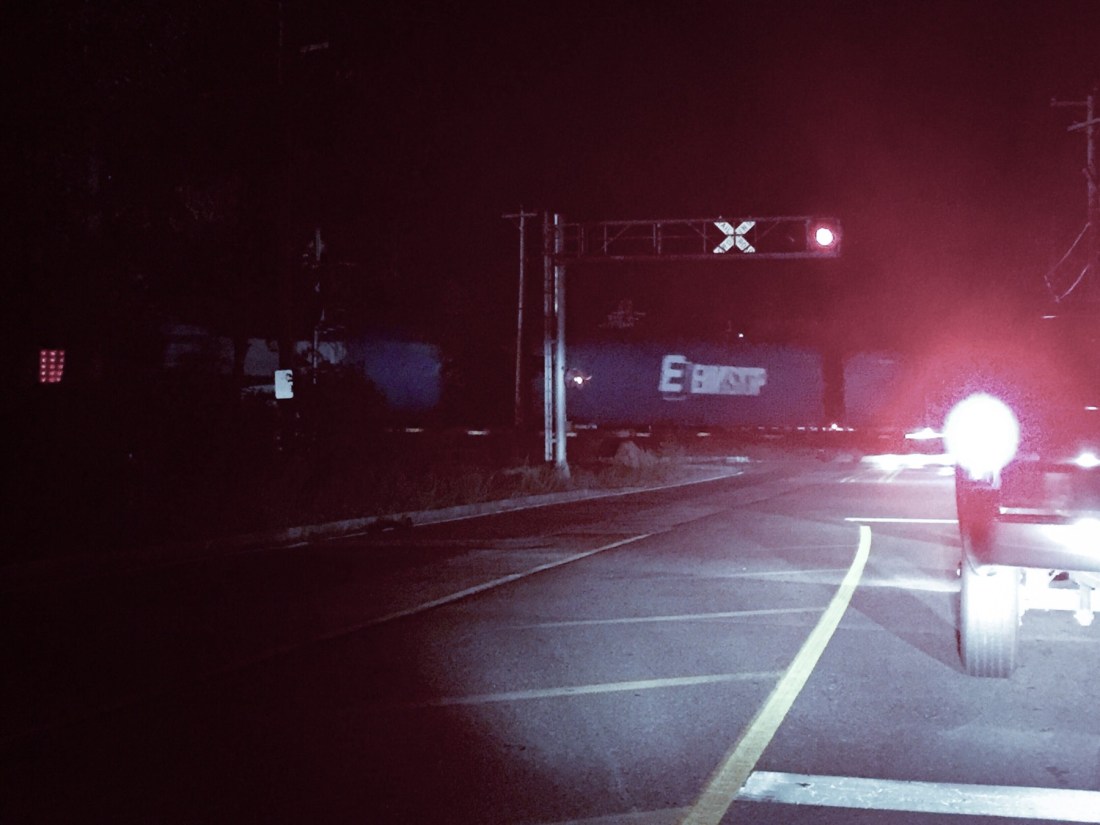 Who knew it would be so difficult to snap a pic of the train blocking the railroad crossing that’s between you and home at 10:00 at night.