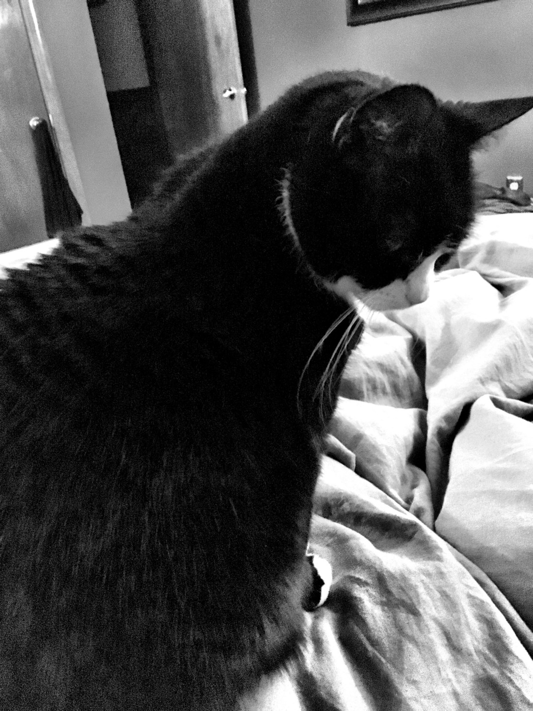 Whenever I am sitting up in bed, Patches jumps up and sits on my left leg. Always the left, never the right. Why? Is there something wrong with my right leg?