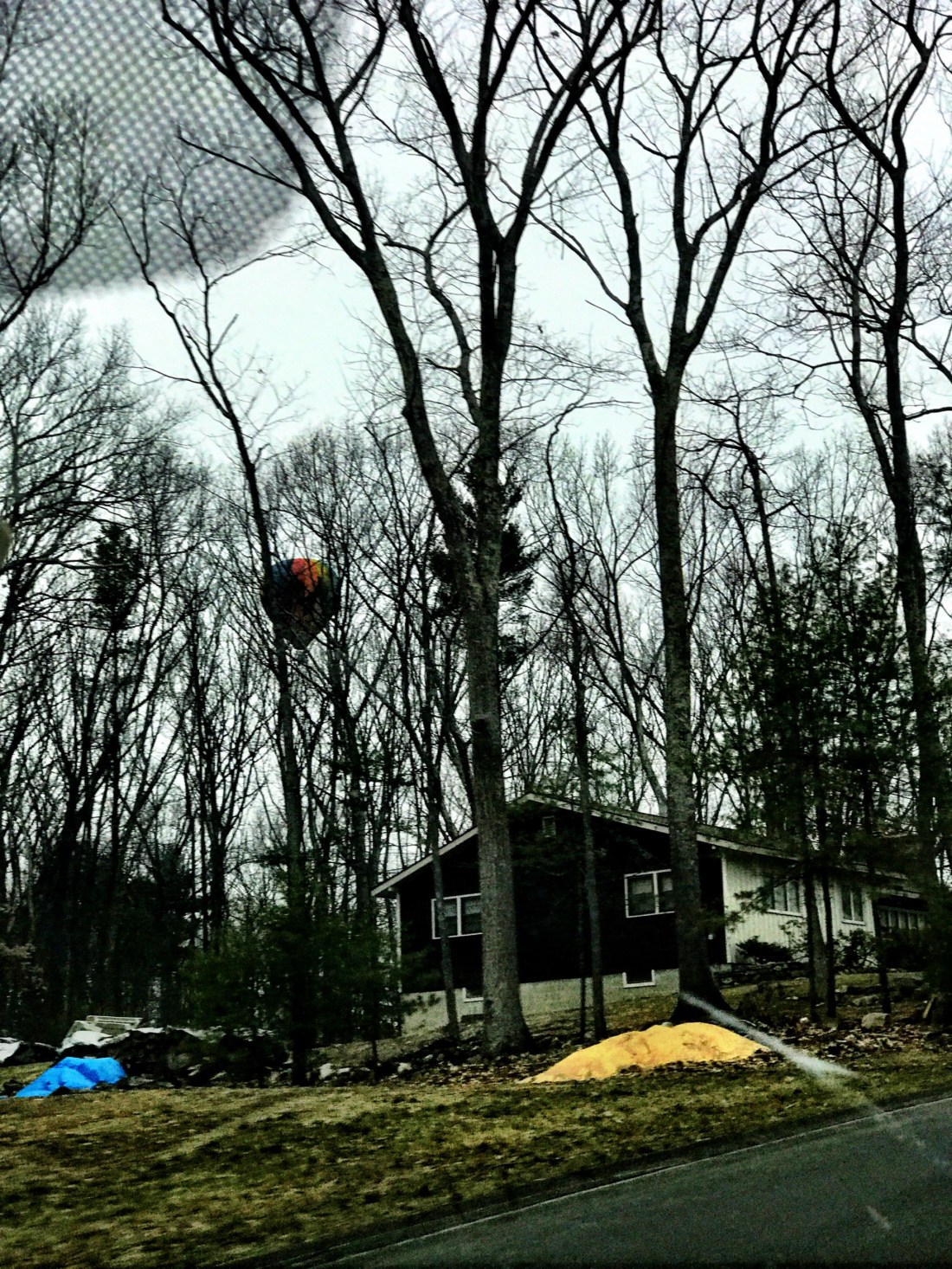 You don’t see this every day. A hot air balloon over Windham, NH this morning. My step daughter took these first two pictures while I was driving.