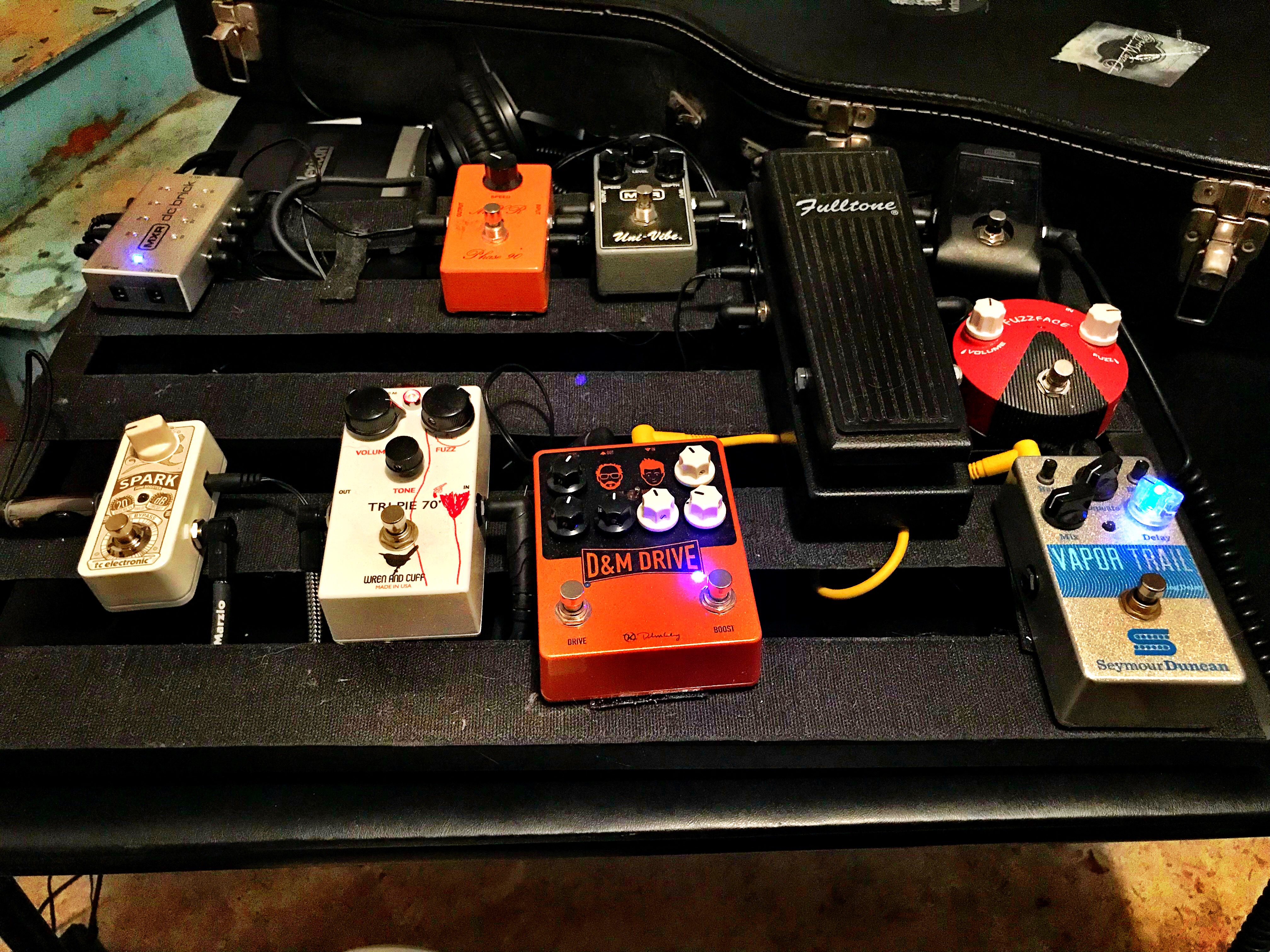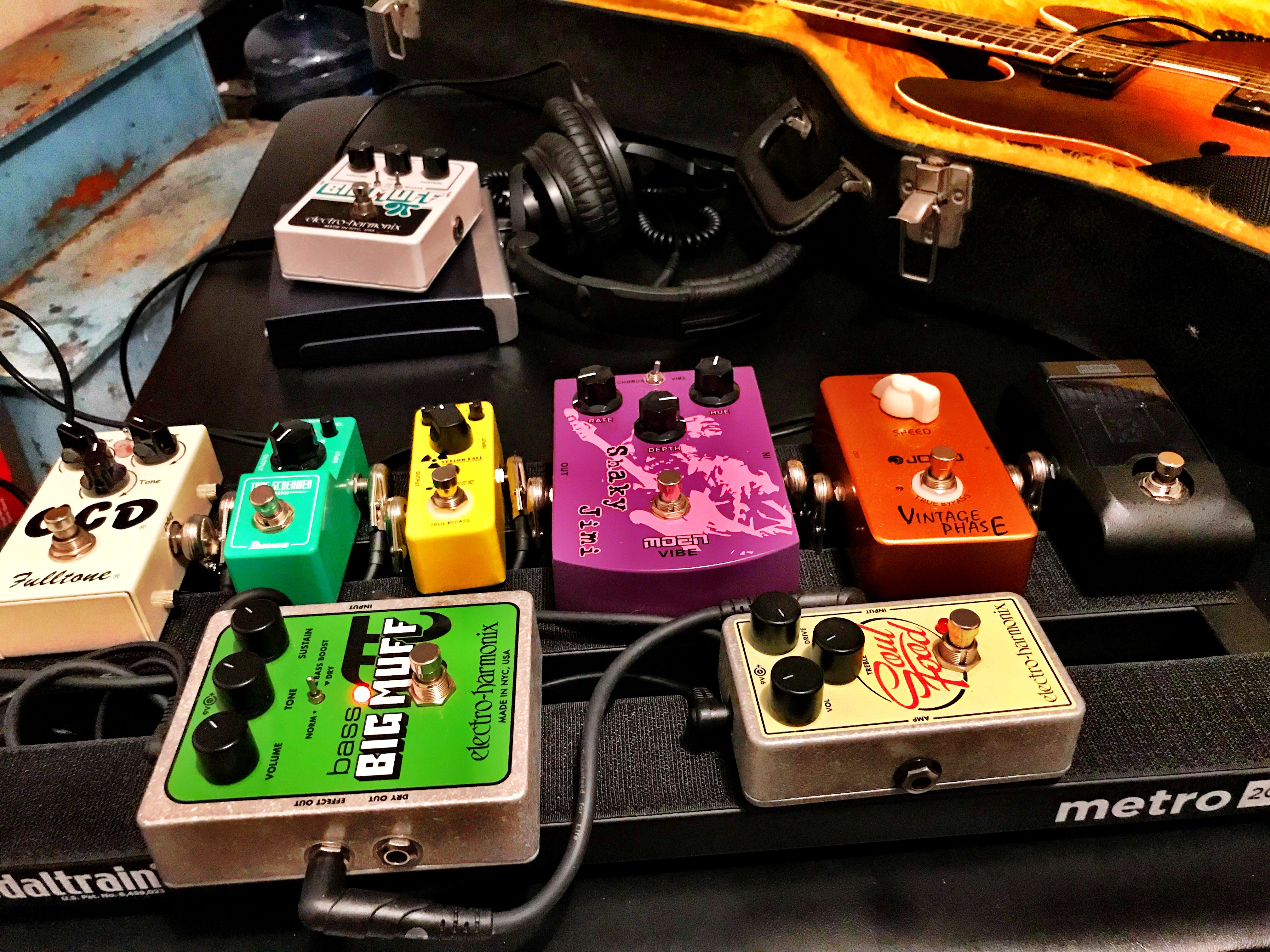 I swapped out the Tone Wicker Big Muff Pi for the green Bass Big Muff Pi on the little stay at home pedal board.