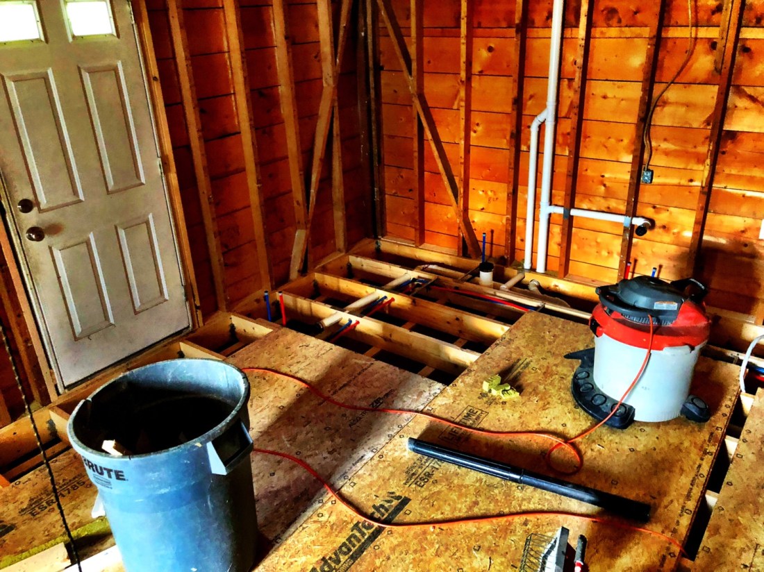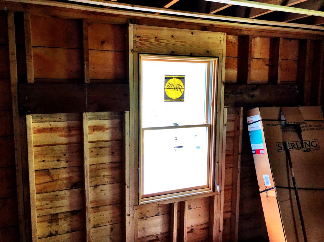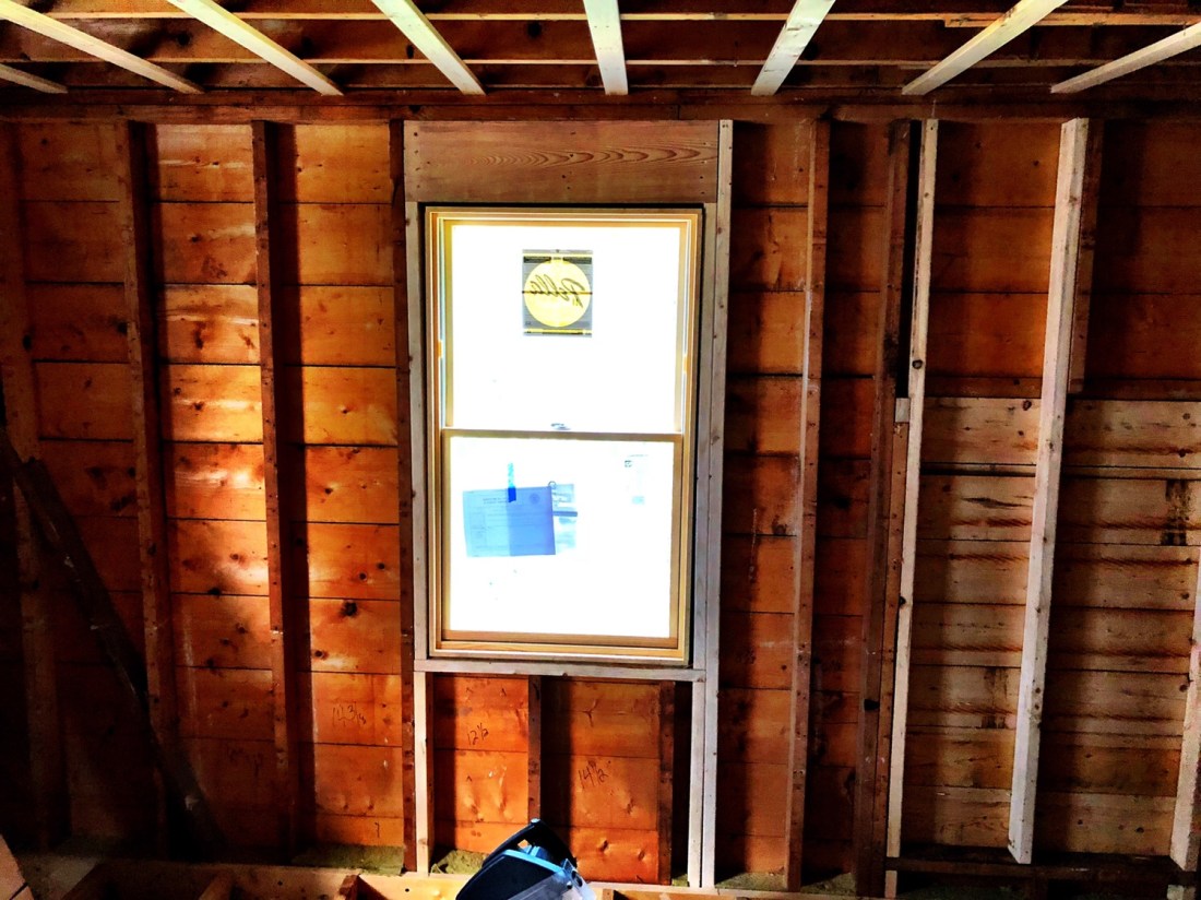 I forgot to do this on Friday. More renovation progress. New window and door trim, some new pipe work in the future bathroom, and INSULATION, BABIE!!!!