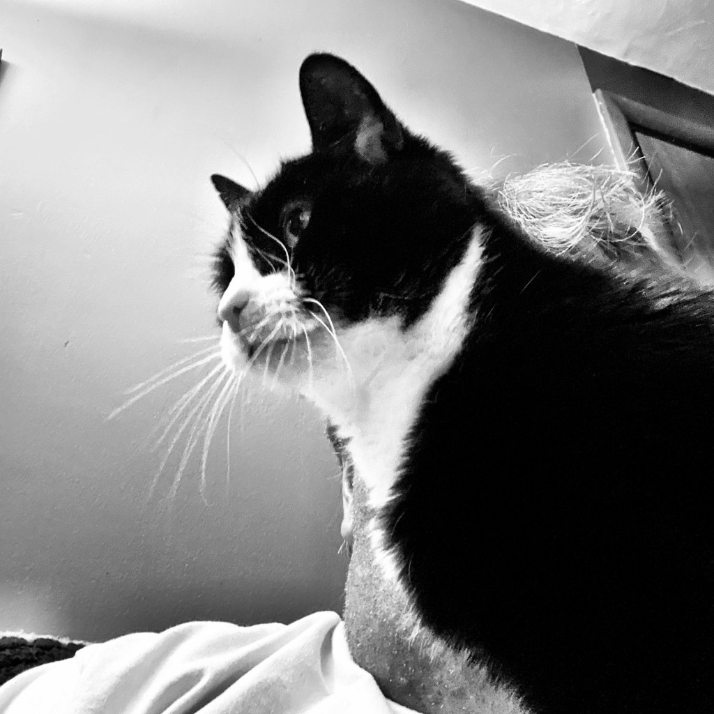 Patches sometimes doesn’t want me to watch TV. Little does she know that I’m huge and she’s tiny and I can pick her up and move her.