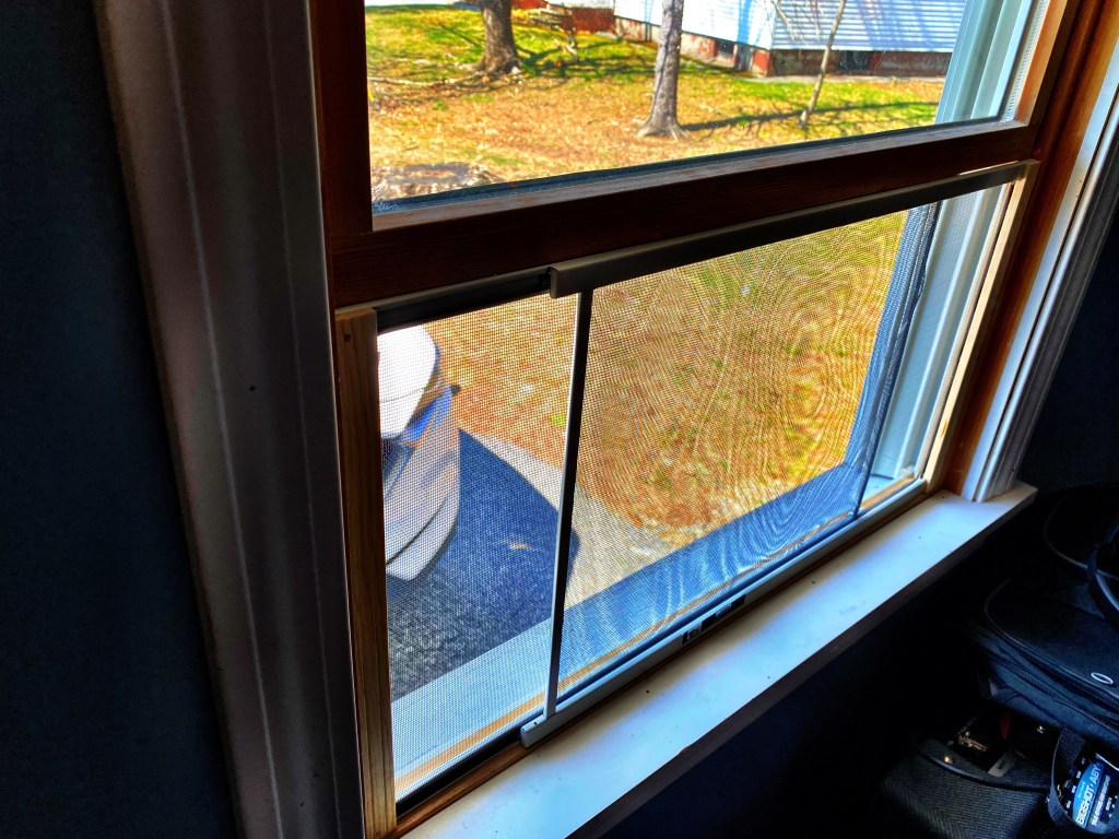 Eventually we will get screens installed, but as a temporary fix, I bought a couple of these things on amazon (the one and only non-food purchase I’ve made since the social distancing started. I’m kinda proud of my sudden frugalness).