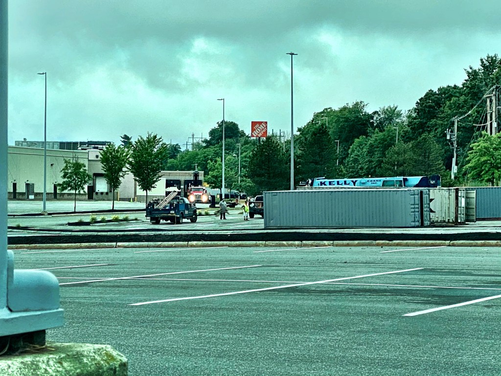 Yes, on the other side of the freight containers is a crane…. at the mall…. why?