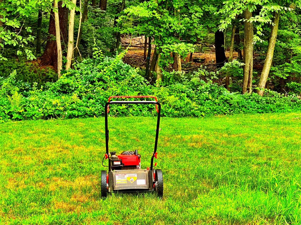 Look at fatty, getting some exercise, pushing that mower like a boss(loser).