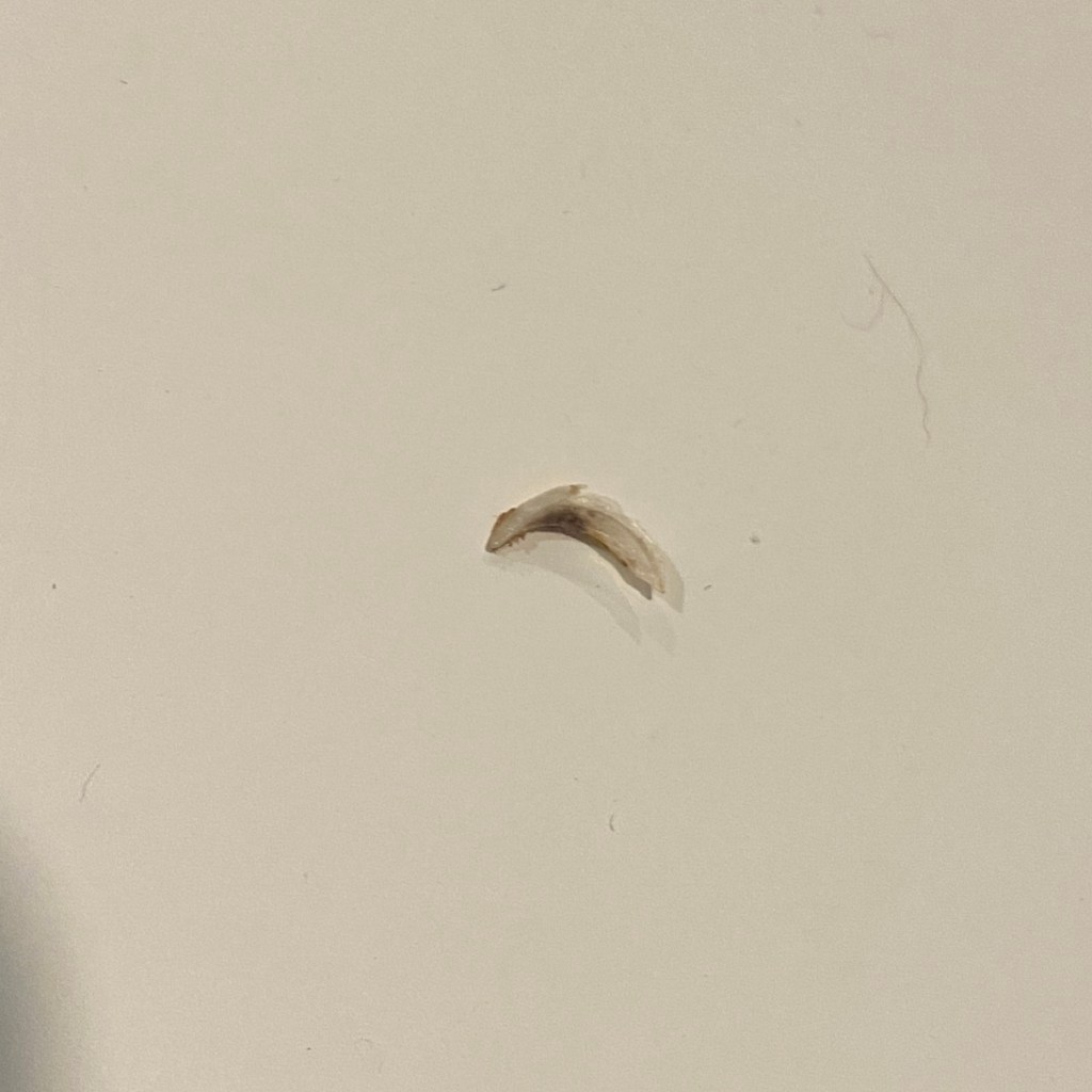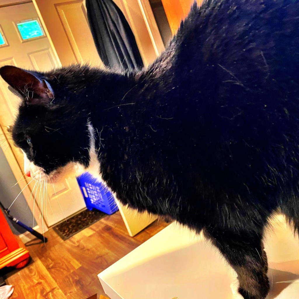 Patches was trying to take over my desk and stop me from working. There was an empty water bottle on the desk with her. She bumped into it and knocked it over. When she did she sort of jumped in place and snapped off one of her claws. The cat version of breaking a nail, perhaps? I’m guessing it’s much more traumatic than that.