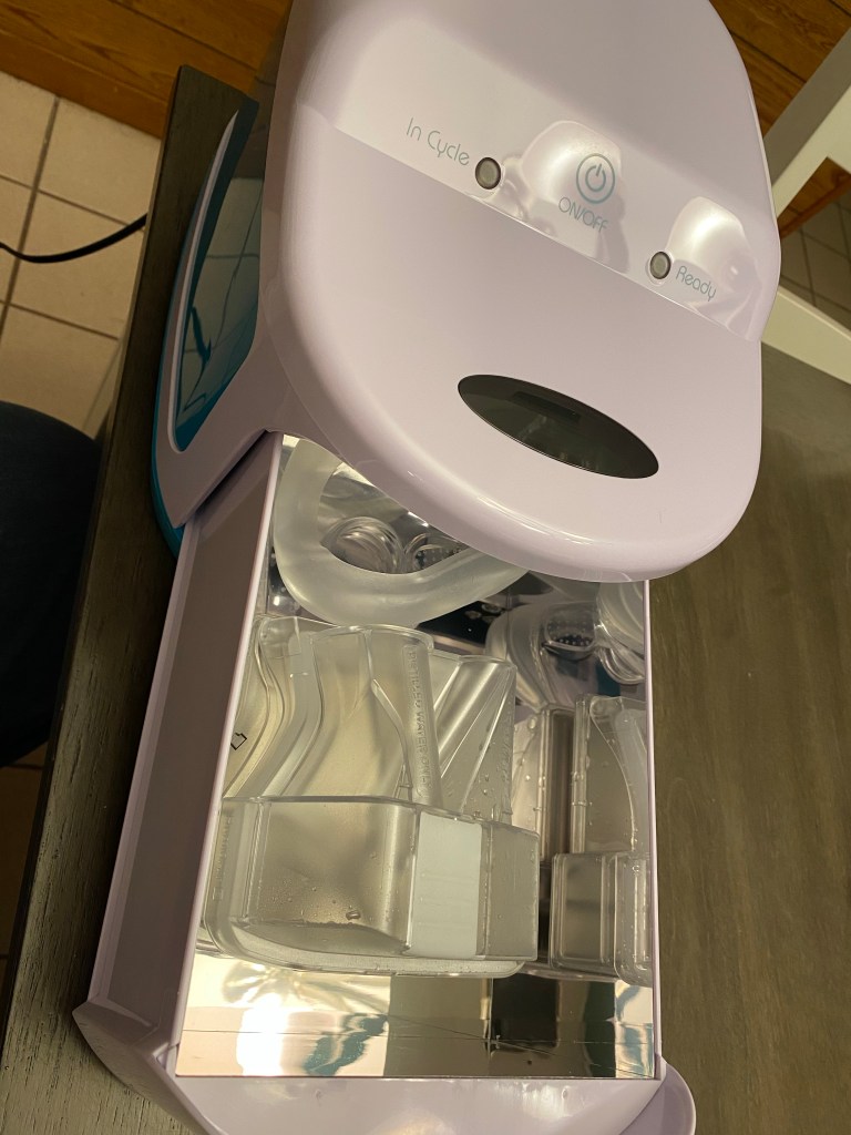 I got a machine to sanitize the moving parts of my CPAP machine. It’s cool. It nukes the crap out of stuff with UV light for five minutes and then poof, disinfected. I’m still going to need to wash the dried up drool out of the mask though. Grody to the Max, man*.