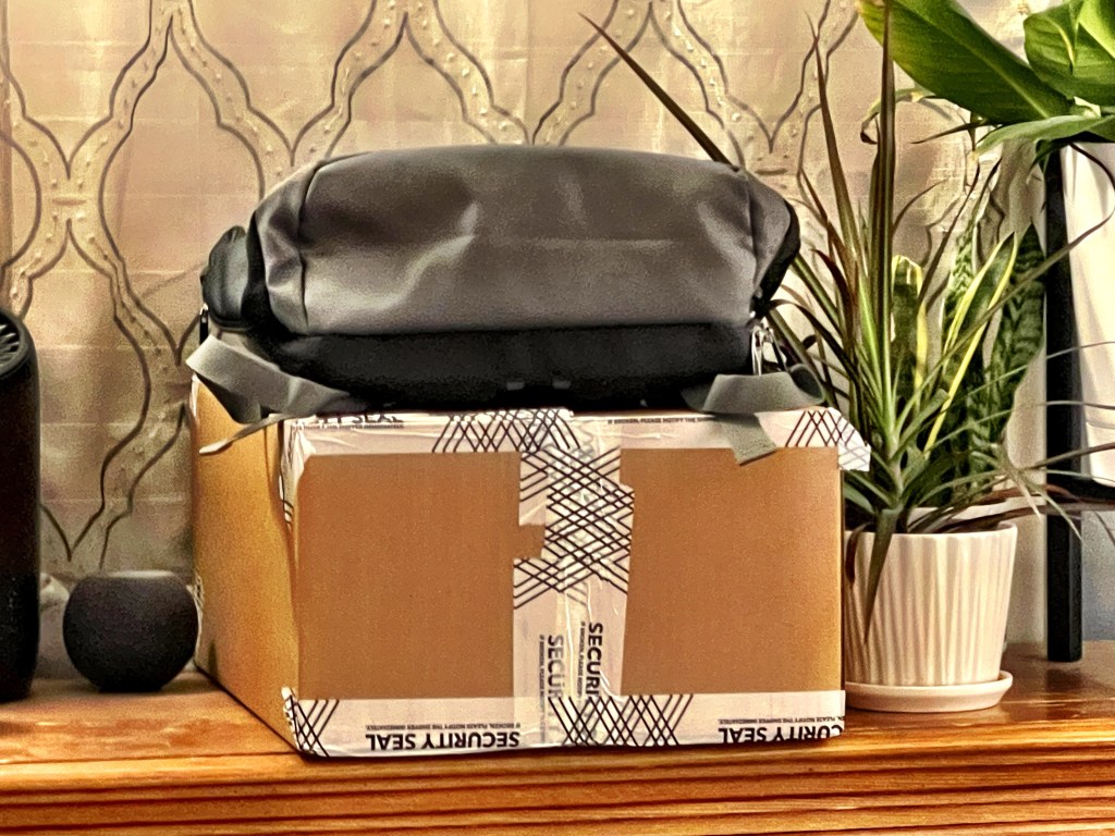 I’ll tell ya… it’s the start of my desk… as in… my desk in the office. The bag on top of the box has my computer inside.