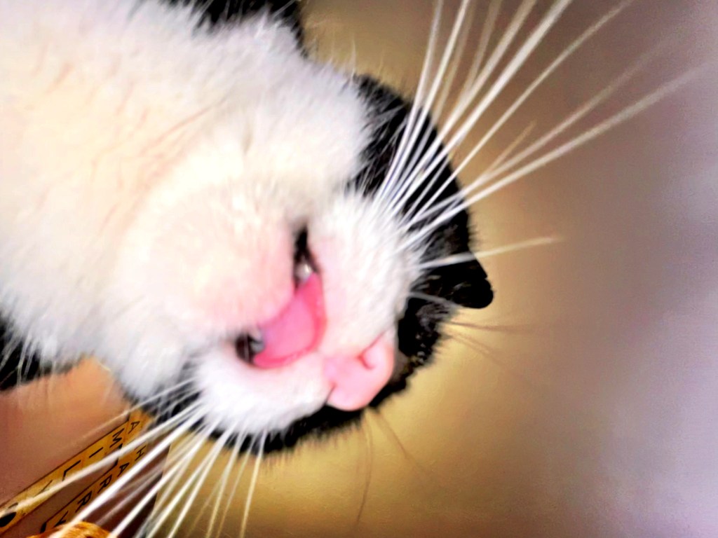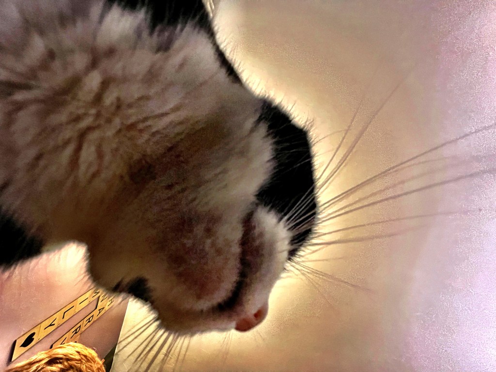 I slid the phone under the cat’s head while she was laying on the arm of the couch. I then used the remote on my watch to snap a couple of pics.