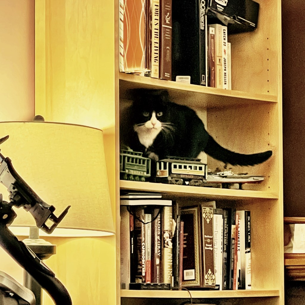 Bookcase Cat robertjames1971 Generic, iphoneography, photography October 27, 2021 1 Minute She likes hanging out on that shelf. Share this: Click to share on Bluesky (Opens in new window) Bluesky Click to share on Reddit (Opens in new window) Reddit Share on Tumblr Click to share on Mastodon (Opens in new window) Mastodon Like Loading... Published by robertjames1971 I'm wicked tall. View all posts by robertjames1971 Published October 27, 2021
