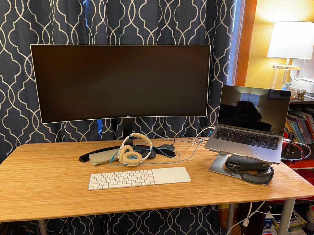 I have a temporary Christmas break desk set up in Jen’s office so I won’t have to be away from her while we work.