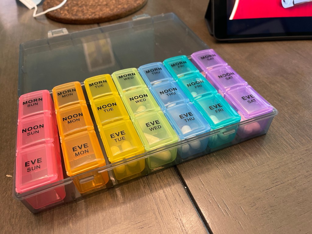 The vitamins are back in play. I also added the prescription antacid. Now my something something pill caddie dark side is complete.