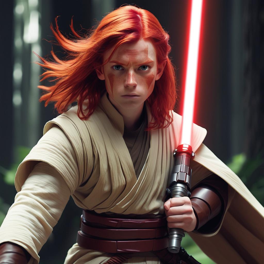 That’s not a Jedi though, that’s a Sith. The red lightsaber is fitting though.