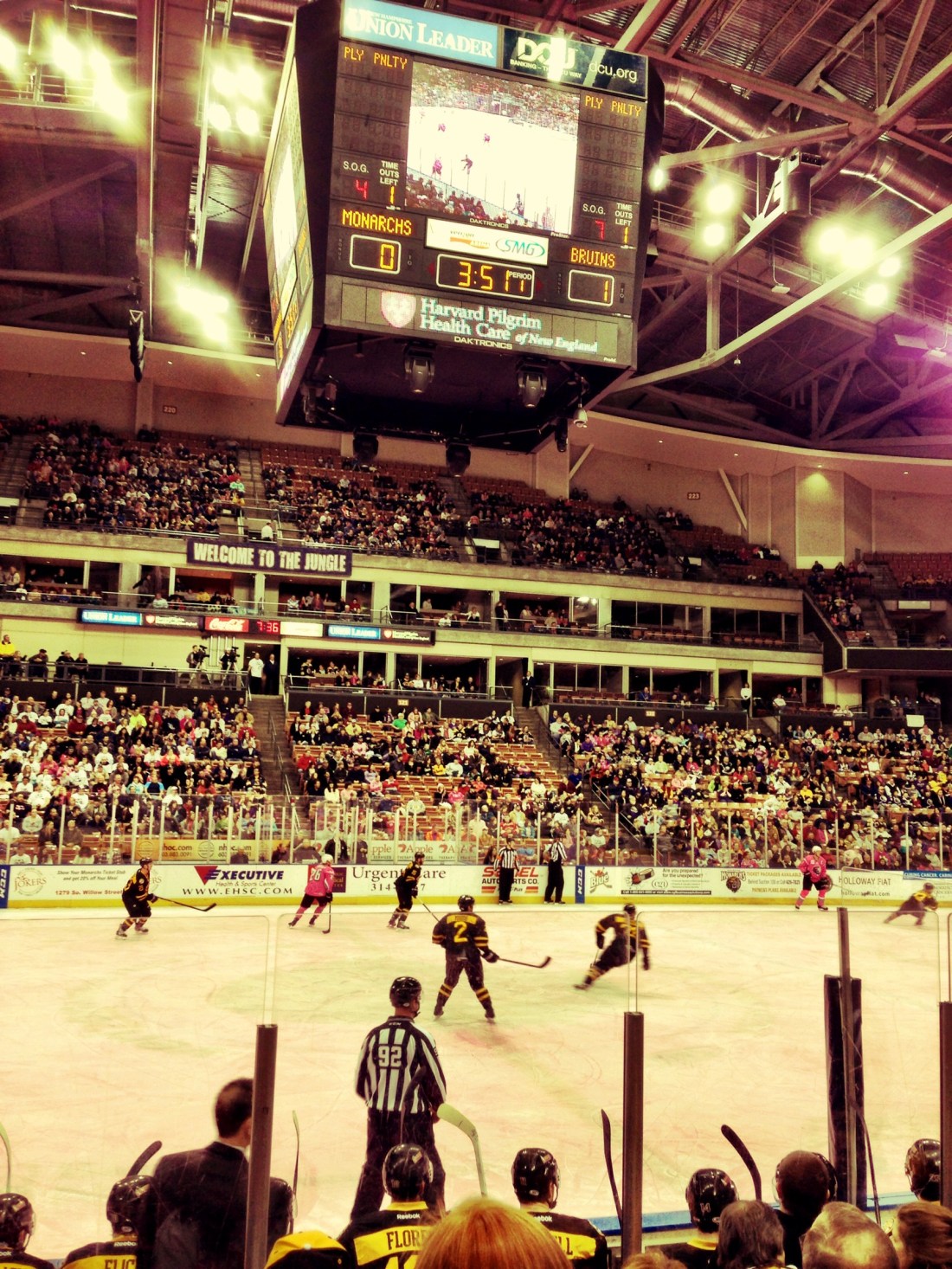 While one might expect Rob the nerd to post something relating to the RPM Challenge, I will instead go with my first AHL hockey game in years. My step daughter’s school chorus sang the national anthem at the Verizon Center in Manchester, NH before the evil, hated, loathed Manchester Monarchs game against the Providence Bruins. My AHL loyalty still rests with two teams. Either Lowell (be it the Lock Monsters or the Devils) even though they don’t exist anymore, or any team that beats the Monarchs.