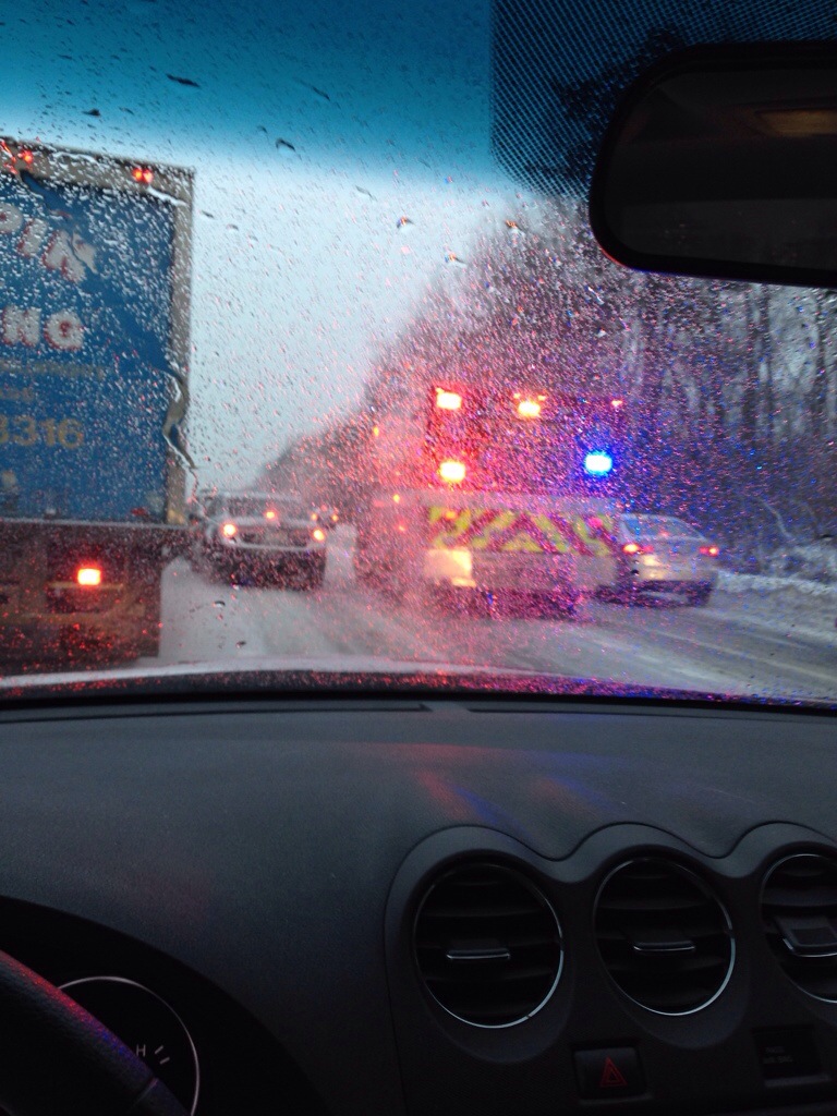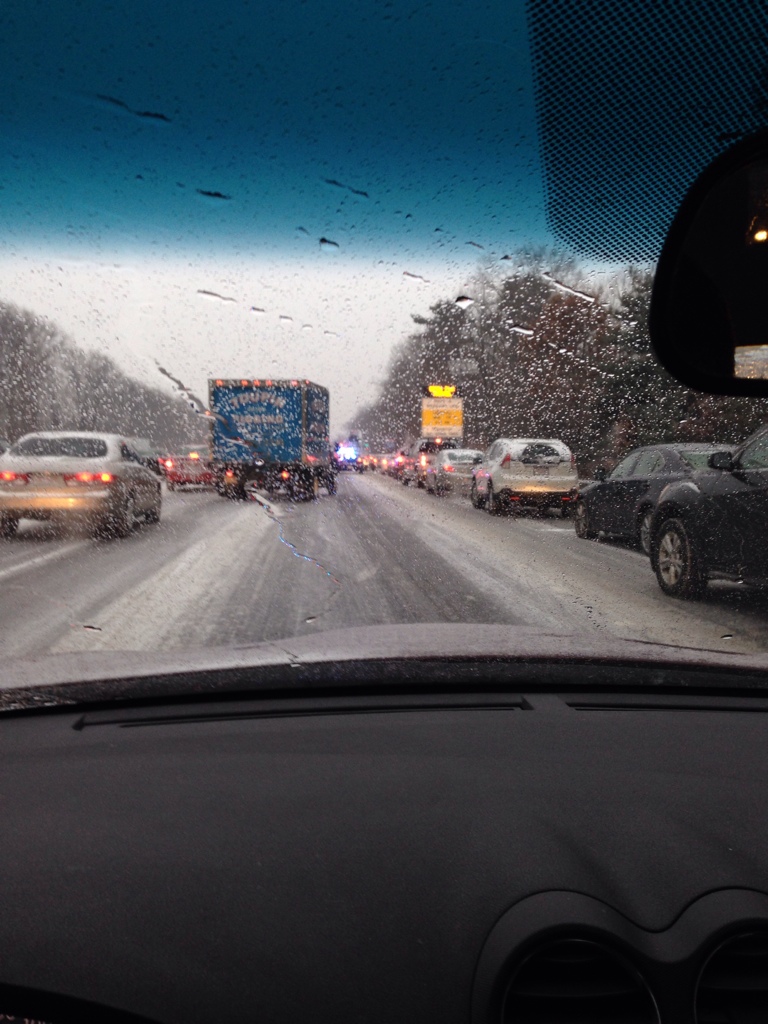 I tried to take a picture as I drove passed. I blindly pointed my phone at the accident and did not take my eyes off the road. This is what I got.