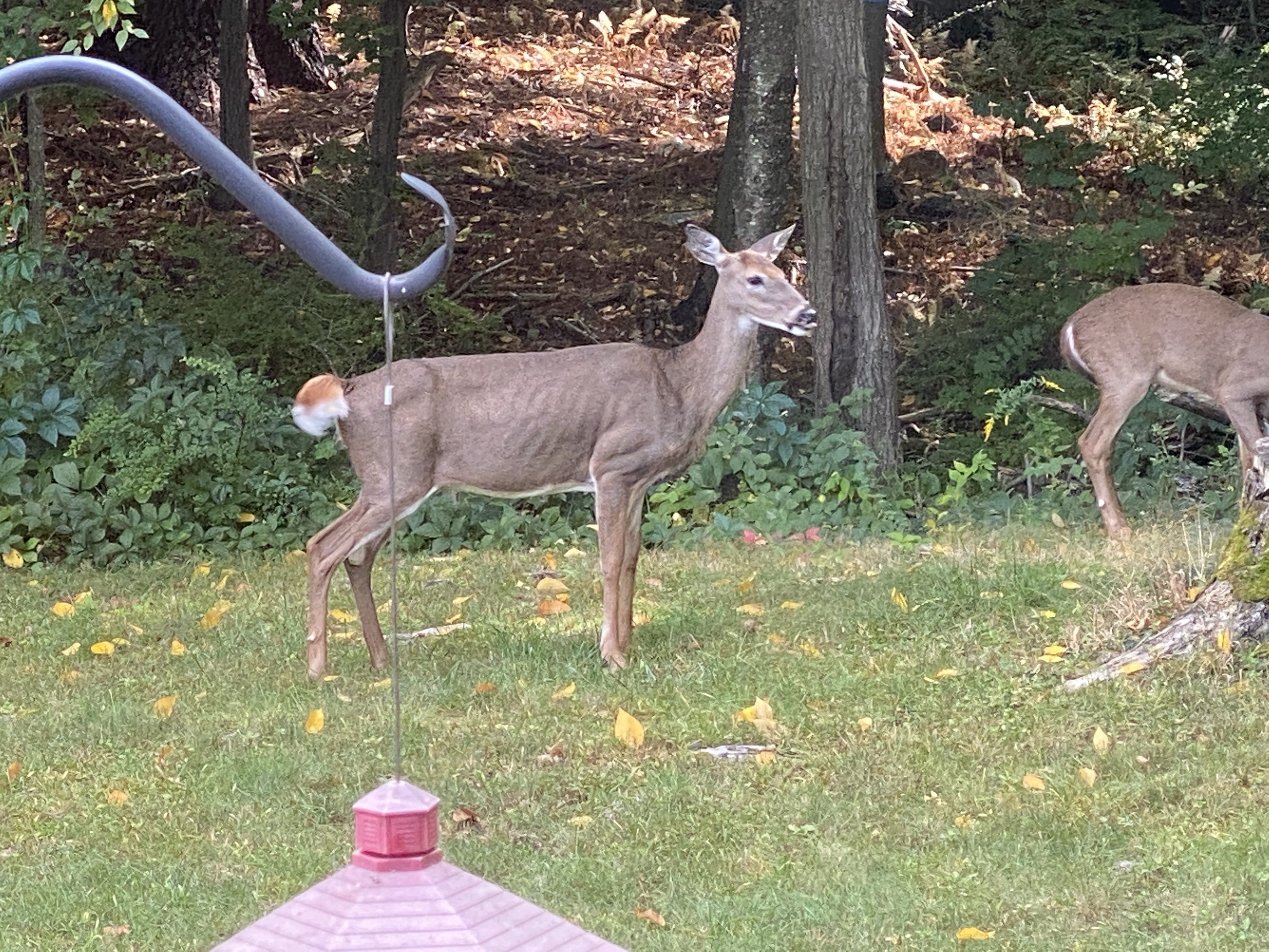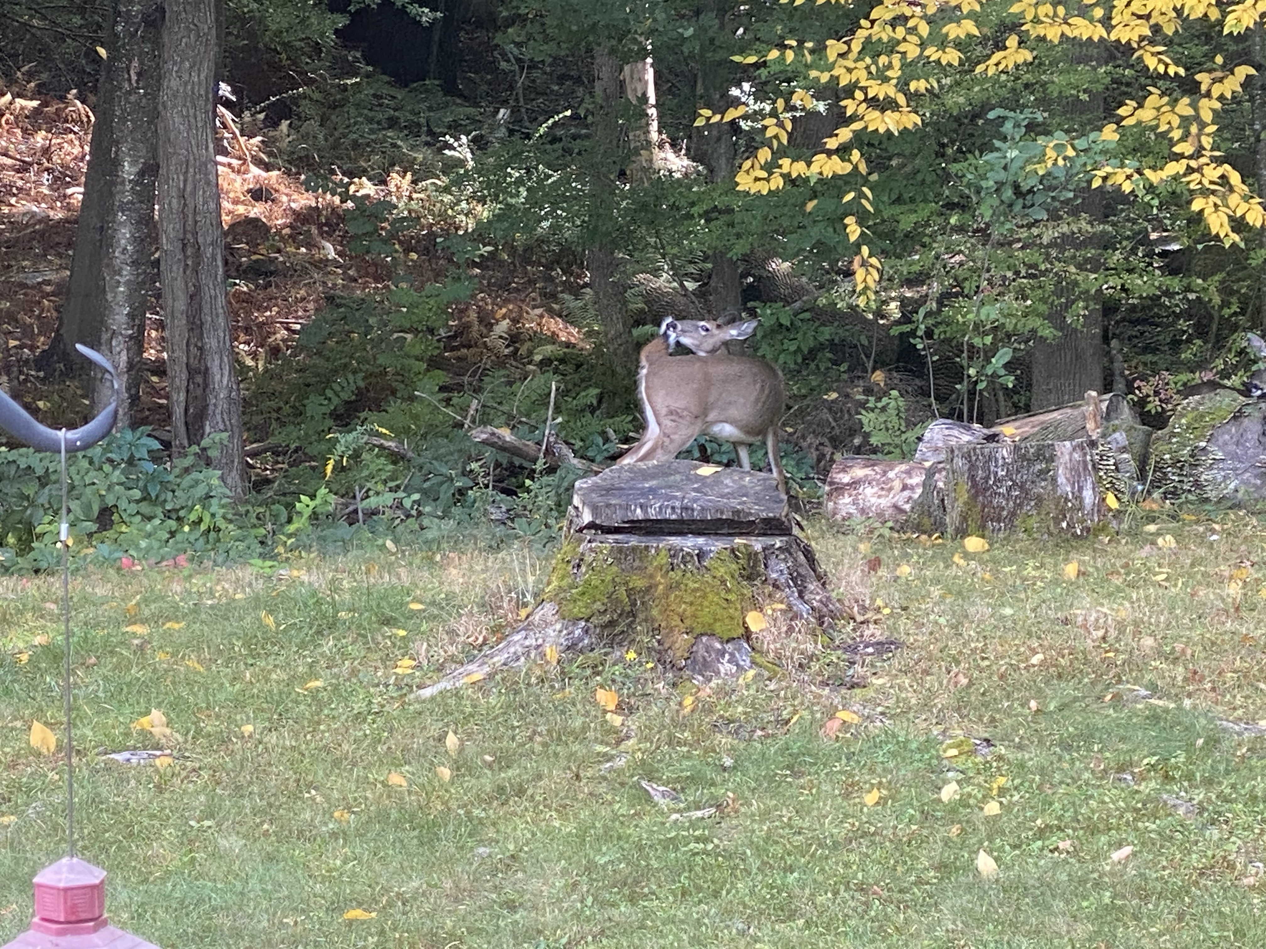 The damage wasn’t bad, but one barrel was open and there was a small amount of trash scattered across the front yard. When I went outside to fix things I found two squirrels, three chipmunks and a handful of various birds checking out the wreckage.