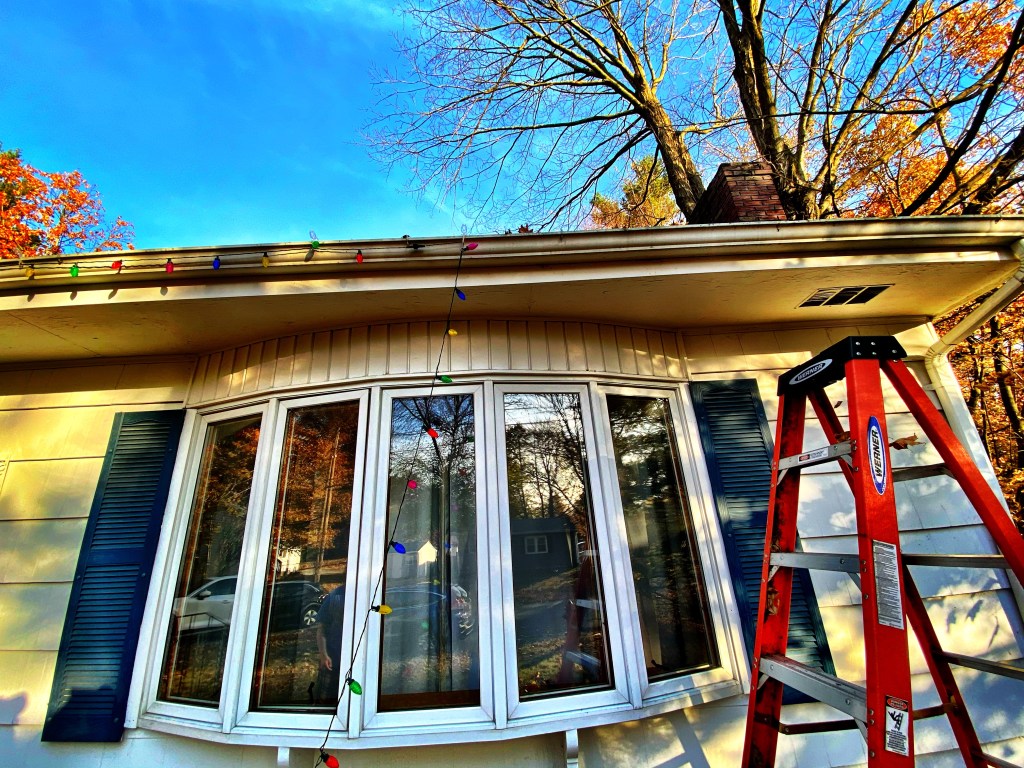 The living room has been decorated up the ying yang for Christmas, and after about an hour or so worth of work by me and my step daughter, we now have Christmas lights outside too.