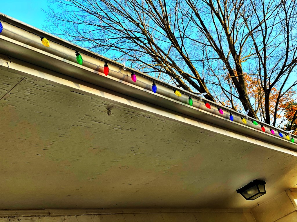 We left our Christmas lights from last year hung up along the edge of the roof. A few weeks ago I noticed a spot near the end of the string where it was broken. Crap. I guess we have to replace them this year.