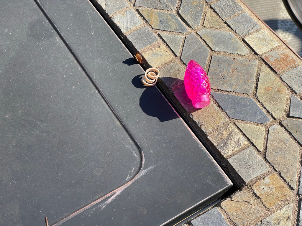 Over the last week or so I have started seeing bulbs in random places in the yard. Once I saw three of them in the back yard next to the house. For reference, we didn’t hang any lights on the back of the house. Today if you were to look in the same spot, all three bulbs are gone.