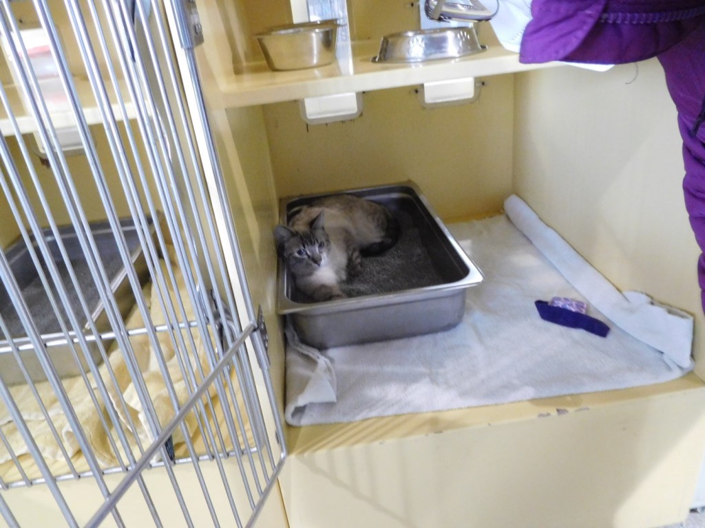 The two cats were a mother and a kitten. The mother was about two years old and the kitten was 4-5 months old. The mother’s name was Disco and the kitten’s name was Boogie. We changed their names when we got them home. Disco became Robin. Boogie became Lily.