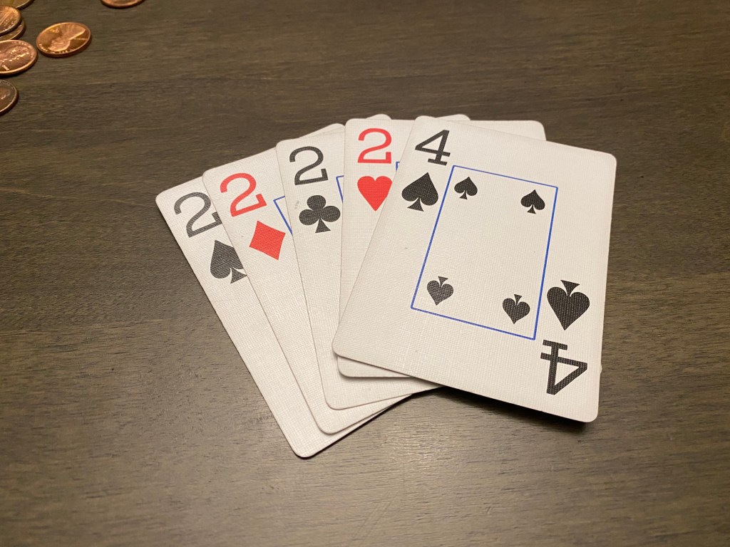I still can’t believe that I made a four of a kind in a game of five card draw last night.
