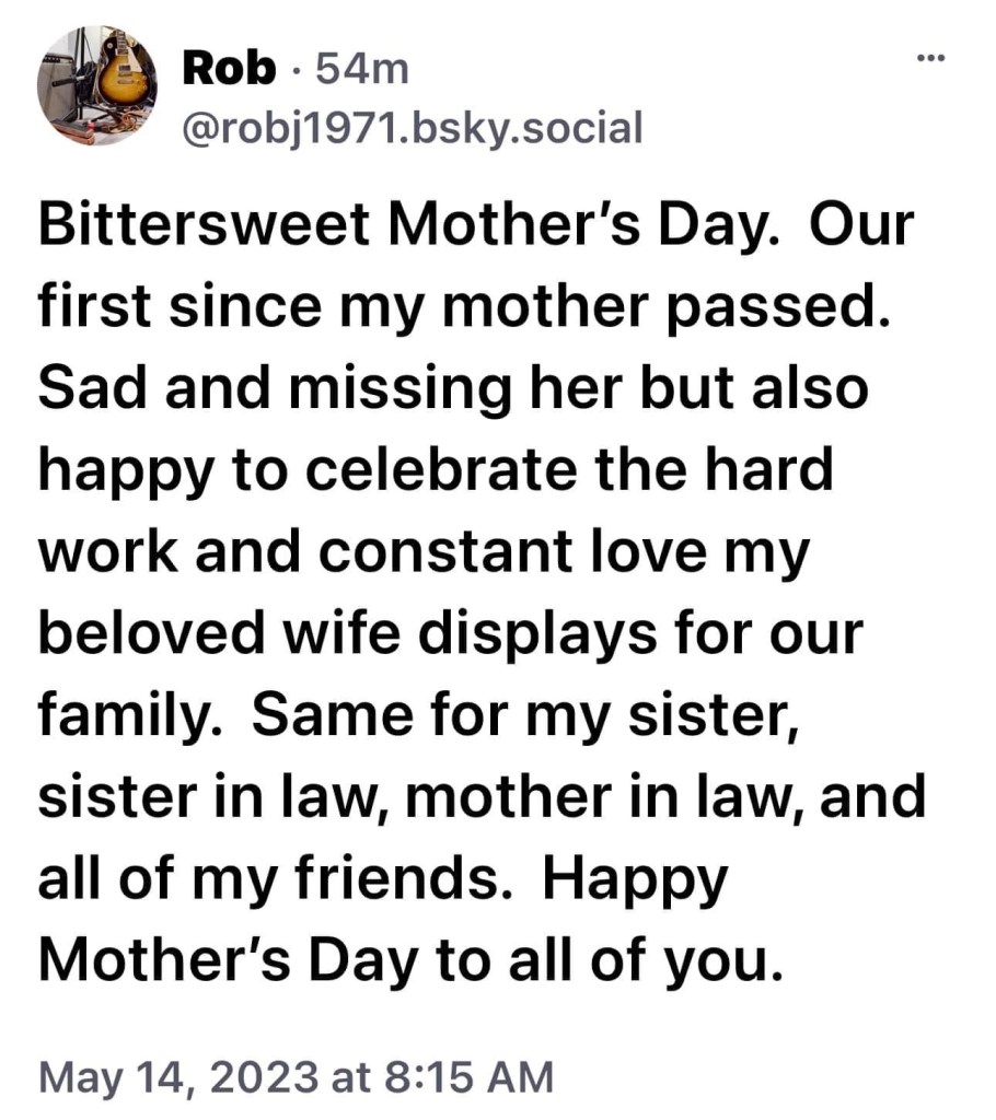 This especially goes out to my beloved wife, Jen. It also goes out to my sister, my sister in law, and my friends who have kids and my mother in law. All the mothers in my life. You are the hardest working people on Earth and you deserve 10000 times the accolades that you get. Every day should be mothers day. No one deserves it more. I love all of you and hope you all have an A+ fantastic day today.