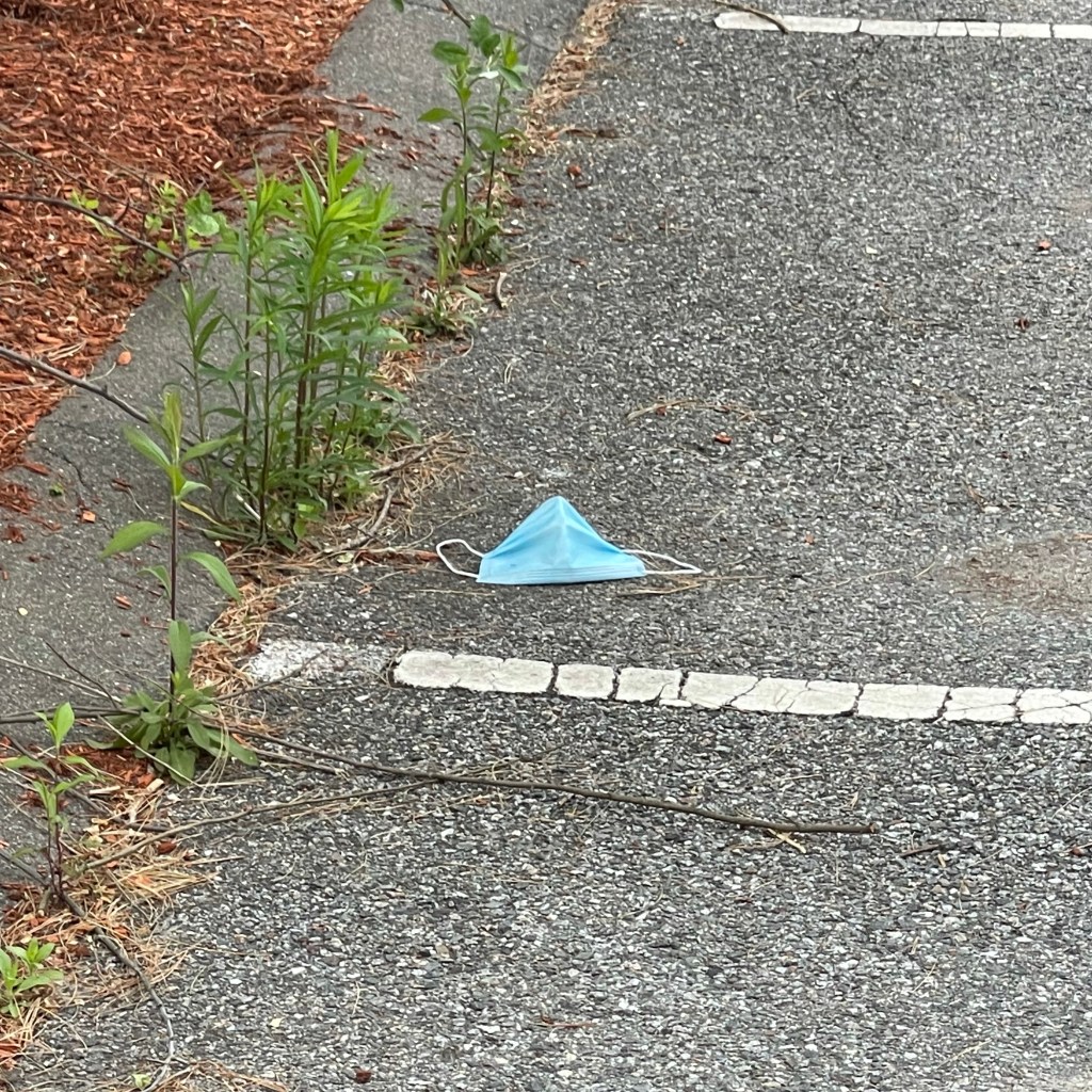 There are two discarded masks on the left side of the car, and one on the right. So this is a thing now?