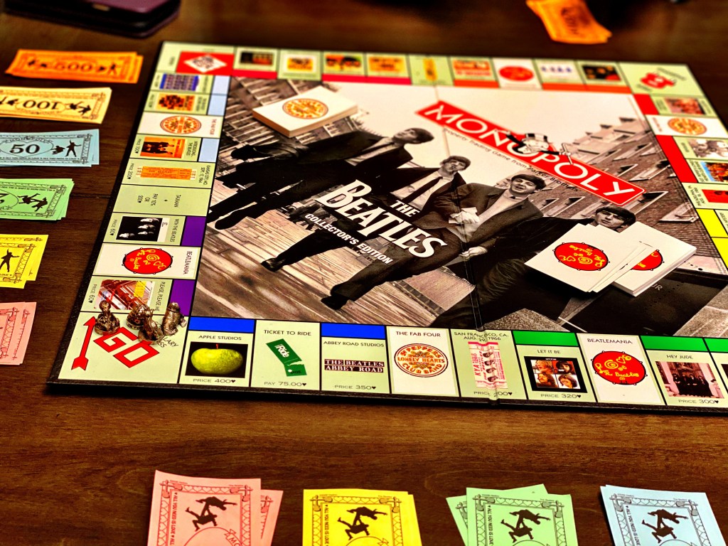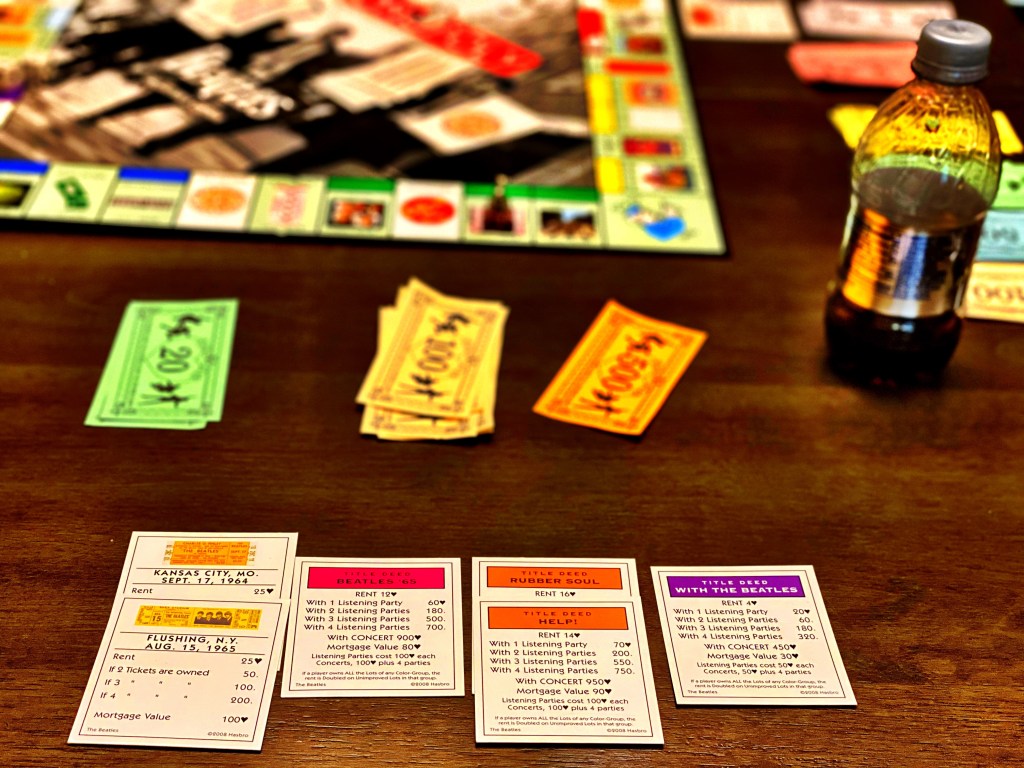 All of those Monopoly posts yesterday were because of her. She asked if she could spend the last evening at our house playing Beatles Monopoly. Absolutely we could. Strangely, we actually played until someone actually won. She and I both went completely bankrupt at about the same time. Jen and Harry kept going a little longer before Harry finally won. I don’t think I’ve ever seen a game of Monopoly actually finish before.