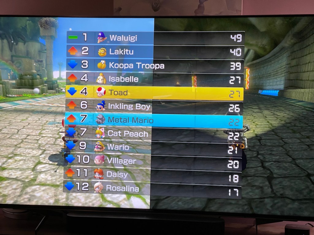 Mario Kart I finished seventh. Is that my best ever? I think so. Share this: Click to share on Bluesky (Opens in new window) Bluesky Click to share on Reddit (Opens in new window) Reddit Share on Tumblr Click to share on Mastodon (Opens in new window) Mastodon Like Loading...