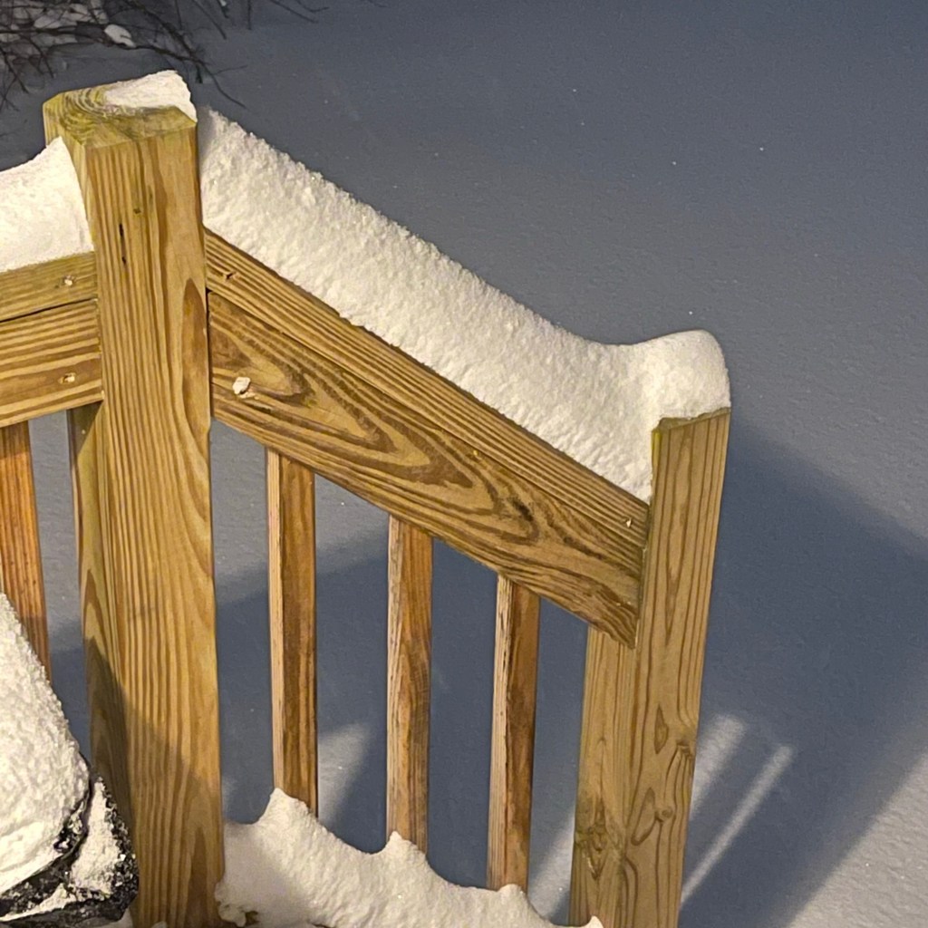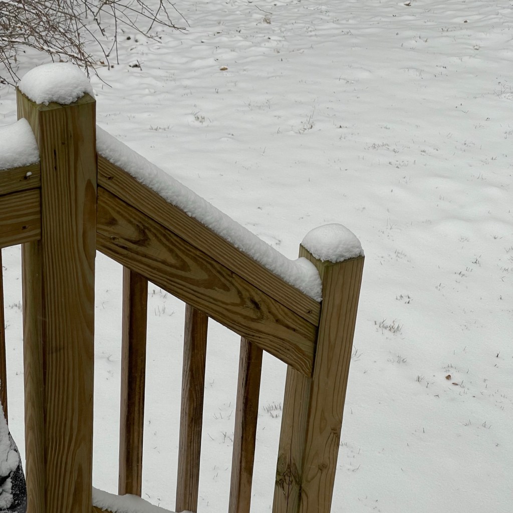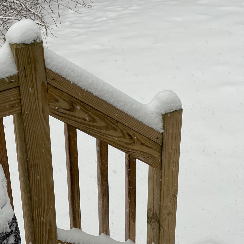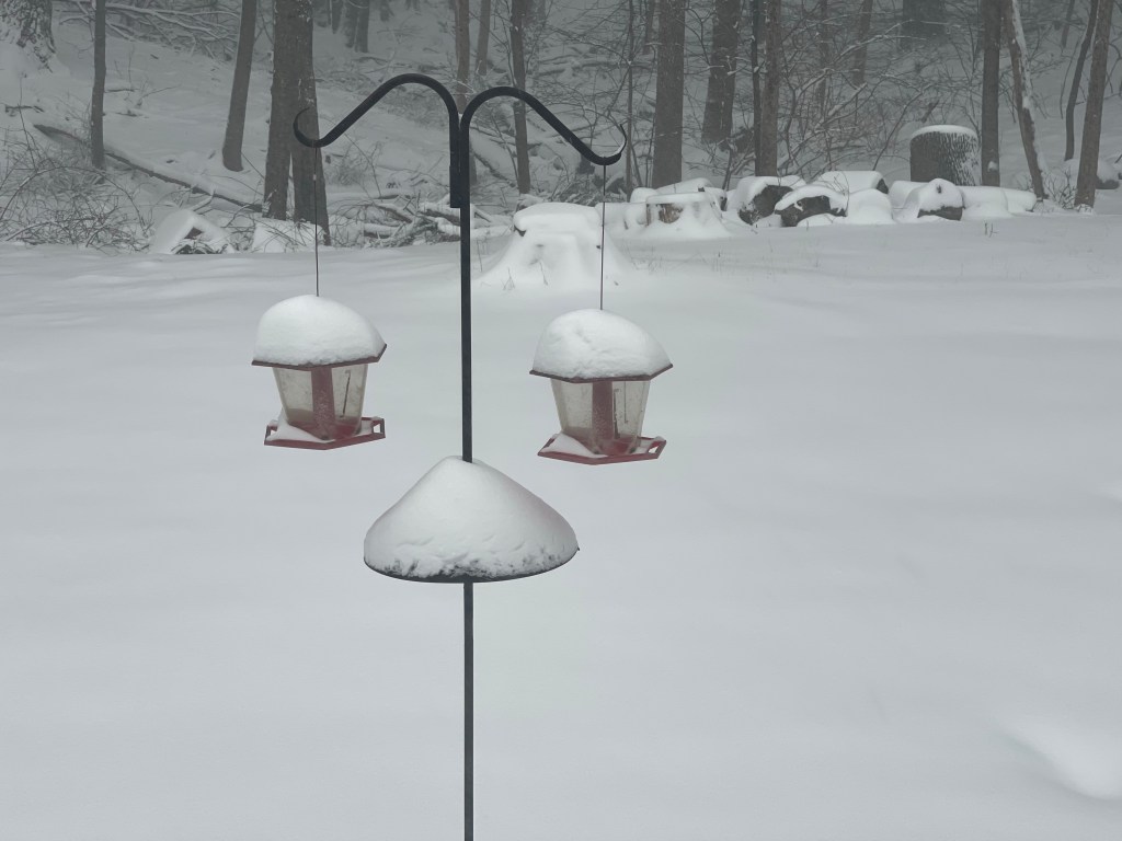 The bird feeders are a good snowfall accumulation reference point too. They are more exposed to the wind though.