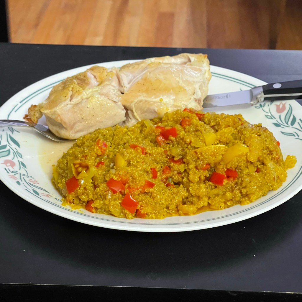 The quinoa is a little too soupy tonight. Hopefully Jen likes it.