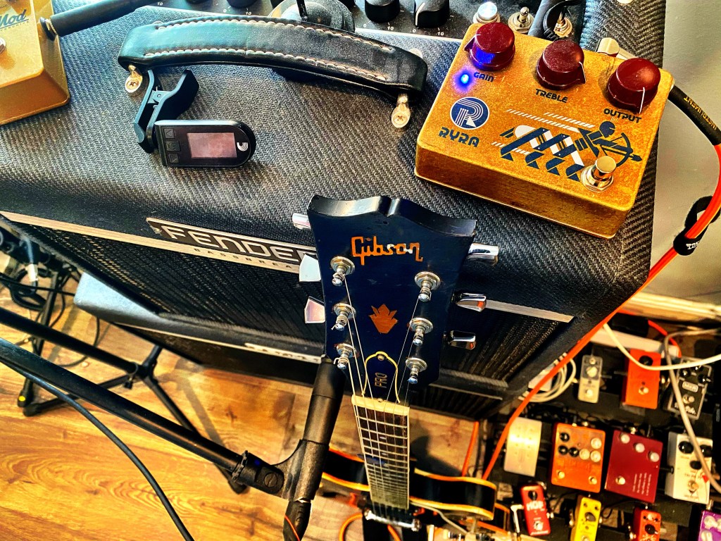 I took my laptop into my room to record some guitars. I had every intention of working out the kinks in the KTR/D&M Drive combo and then without really planning it I unplugged the board and plugged in the new RYRA The Klone pedal. Then I did something that would not have happened without Coronavirus.