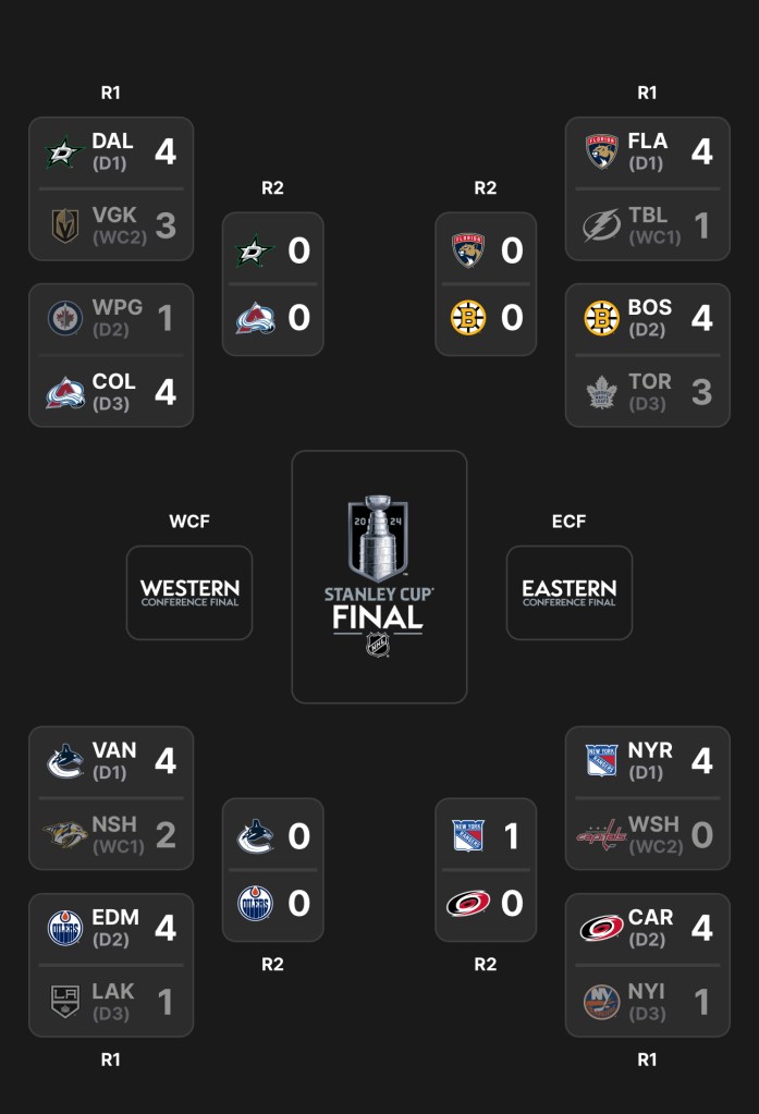 The first round of the 2024 NHL Playoffs wrapped up last night and the second round kicked off last night as well. Worlds colliding, the universe is spinning out of control! I need to write another predictions post!