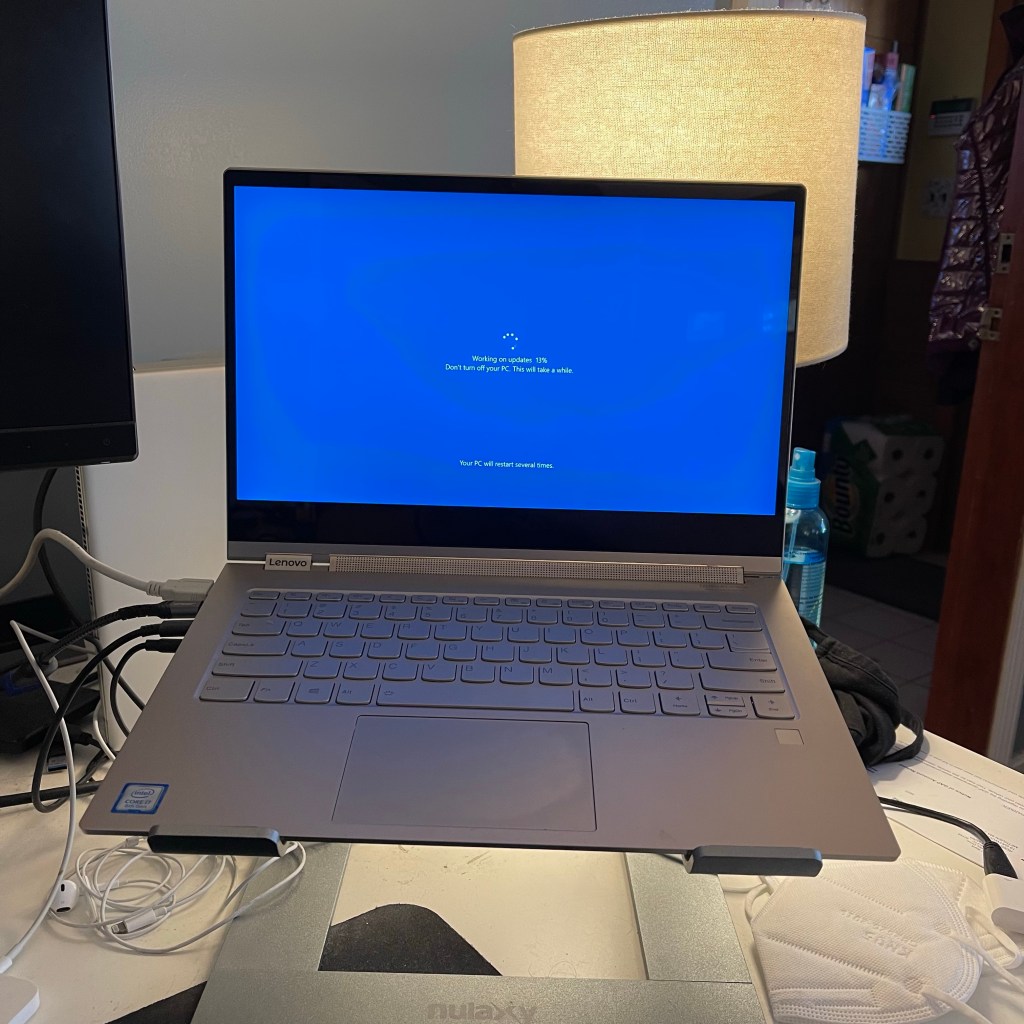 Prior to social distance I had two laptops on my desk in our home office. I used my MacBook Pro along with a second monitor for all but the eight hours I was telecommuting on Thursdays. While telecommuting, I switched to a second laptop, running Windows 10. I used the same second monitor. I have a 3-1 adapter that has a USB 2.0, HDMI, and USB C input into a single USB C plug. I had my USB dock, my monitor, and my power all running into it. When I switched from Mac to Windows I’d just pull the adapter out of one machine and plug it into the other. Done.